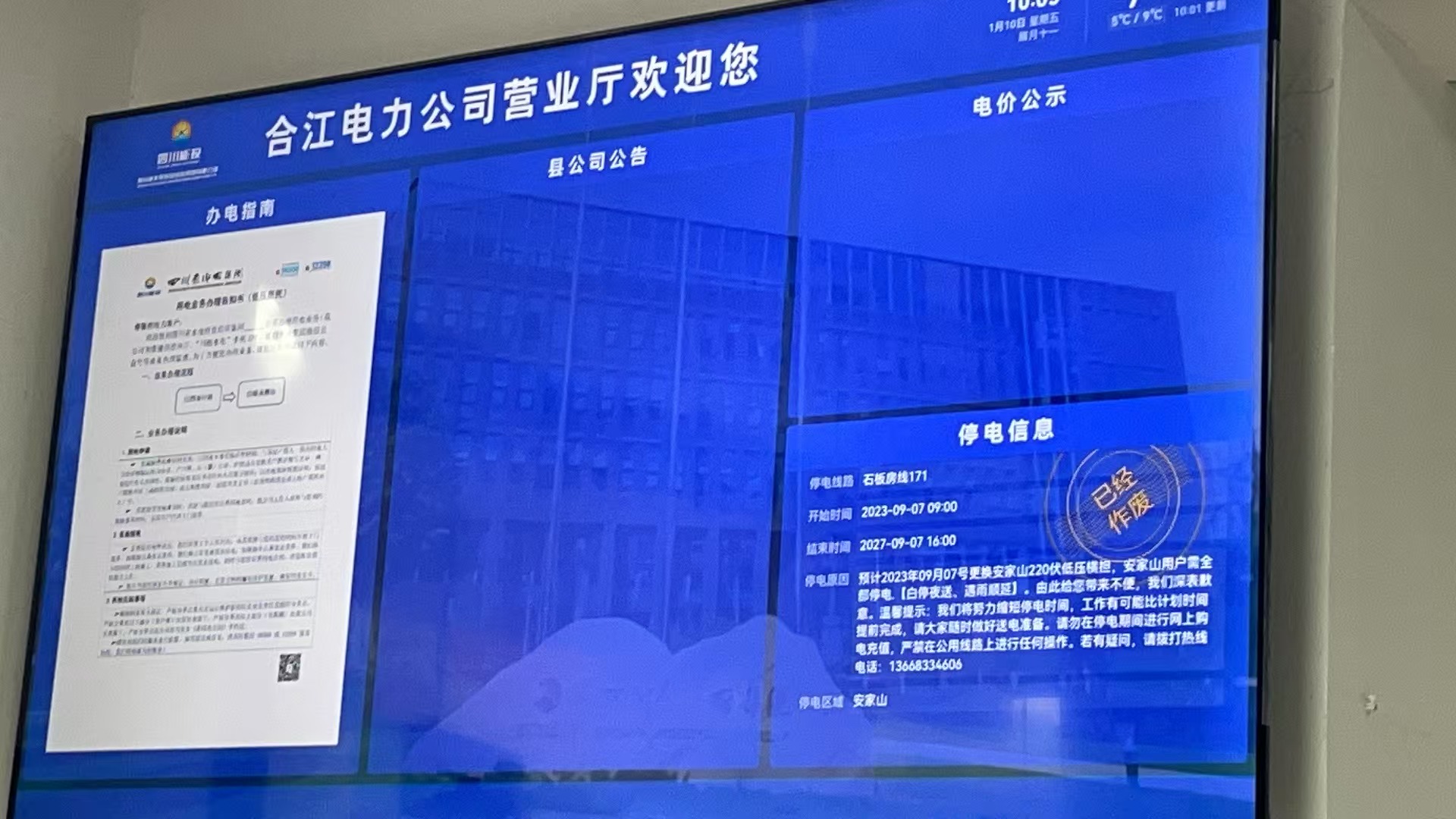 65"智慧屏 业务自助服务区 停电信息动态公示、服务导航