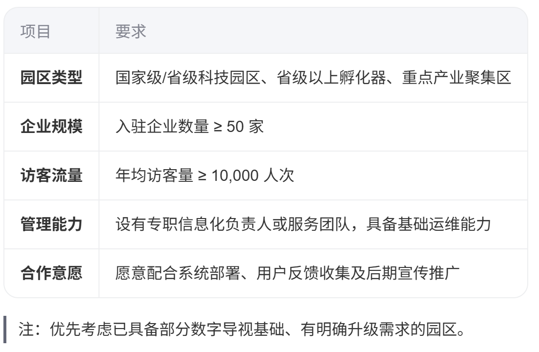 为确保项目质量与示范效应,申请园区须满足以下基本门槛: