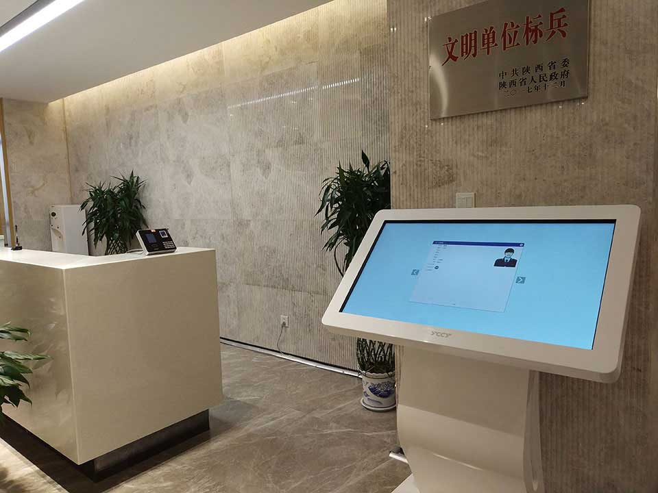 信息动态公示平台部署在平台服务器,6、7楼大厅、会议室和办公室的公示系统(触控查询机、智能平板等)通过有线连接到平台服务器,手机、平板电脑可通过4G、WIFI网络连接到平台服务器,能随时随地查看和管理人员去向状态、请假审批、接收通知等;办公电脑可通过网络连接到平台服务器,管理人员基本信息、发布通知公告、宣传海报和视频到公示系统。6、7楼大厅的指纹、面部识别结果直接公示为在岗、下班、离岗等状态。