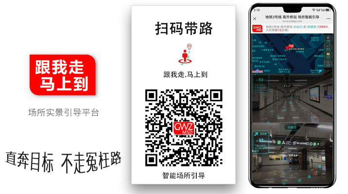 "跟我走.马上到"是精准的场所引导服务平台,在您还没有到达目的地时,目的地已经以实景方式呈现在您的面前,高效精准的引导您到达目的地。