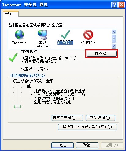 2. 对可信站点进行设置安全,设置方法如下: