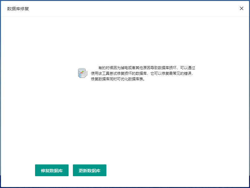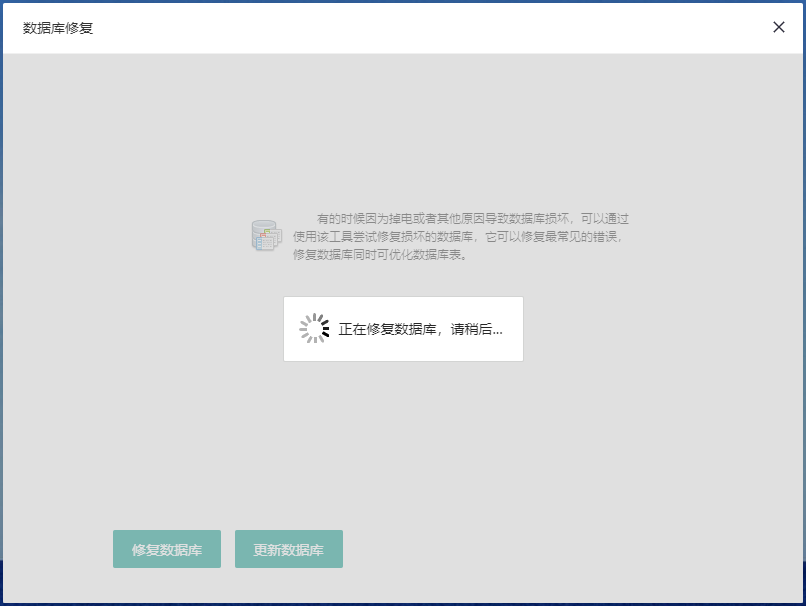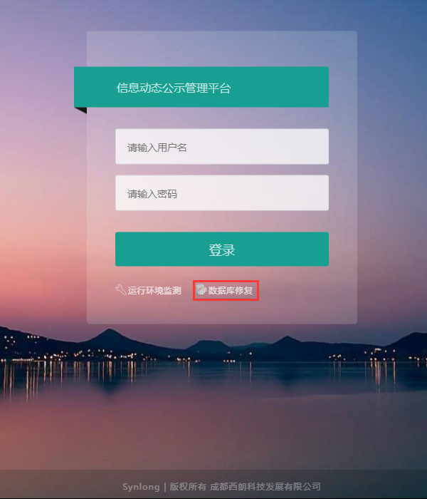 在平台登陆界面,点击【数据库修复】打开数据库修复工具窗口。