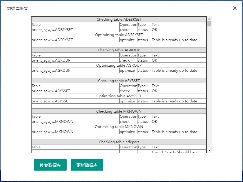 有的时候因为掉电或者其他原因导致本地部署的信息动态公示管理平台数据库损坏,可以通过使用信息动态公示平台的数据库修复工具尝试修复损坏的数据表,它可以修复最常见的错误,修复数据库同时可优化数据库表。