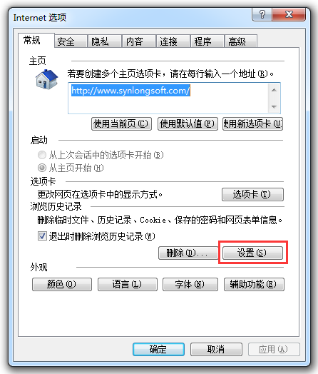,选择Internet选项后选择【常规】选项卡,点击浏览历史记录的【设置】。
