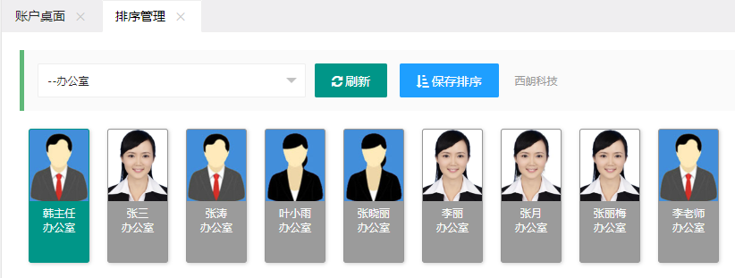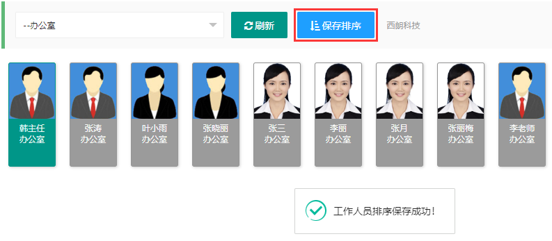 将需要调整位置的工作人员拖拽到新位置后,执行【保存排序】可调整工作人员的公示排列顺序。