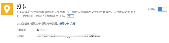 1、登录企业微信管理后台,在“我的企业->企业信息”找到企业ID,在“应用管理->应用->打卡”到应用详情找到Secret。